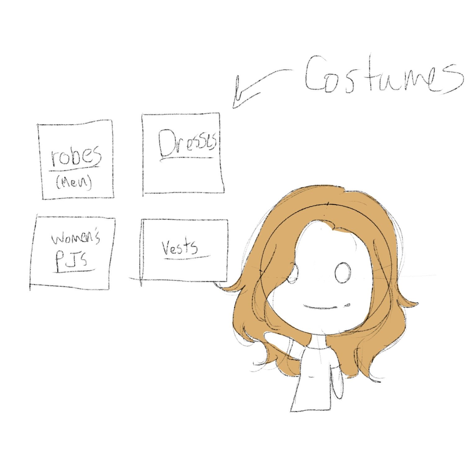 Unfortunately, I only took one photo during production hours because I was busy working and couldn’t have my phone out. So enjoy these sketches I drew to recreate some of what I did!