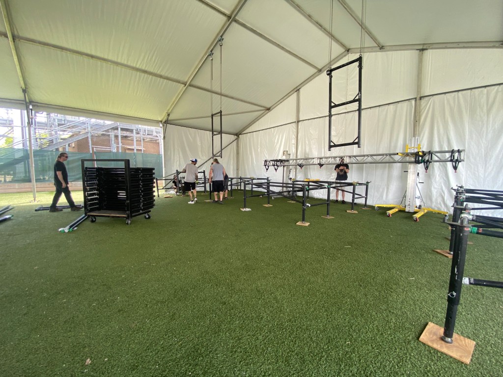 Wednesday, May 17th, we packed up the lights and drove to the Muirfield Golf Club to set up lights in the Champion Pavillion.