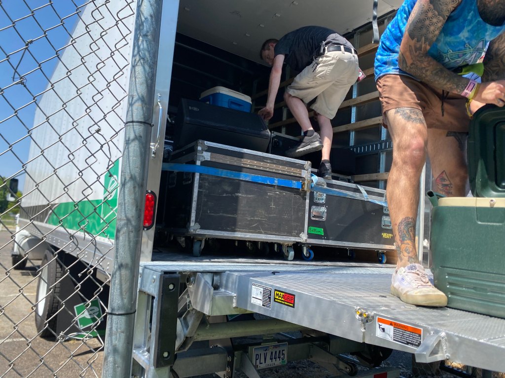 I then handed them to Doug, lead singer of Rock House and business partner of Steven’s, to screw into parts of the beams. When all the lights were installed, we did one final sweep of the Pavillion before loading the empty cases into the truck and driving back to the warehouse.